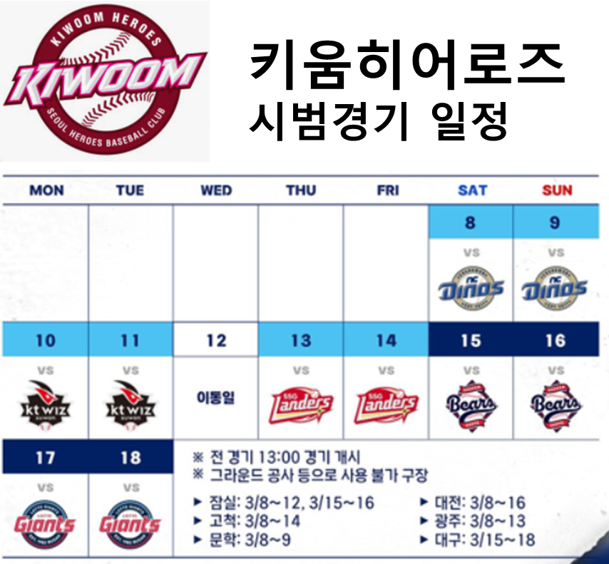 2025 키움히어로즈 시범경기 일정, 시간, 구장 안내
