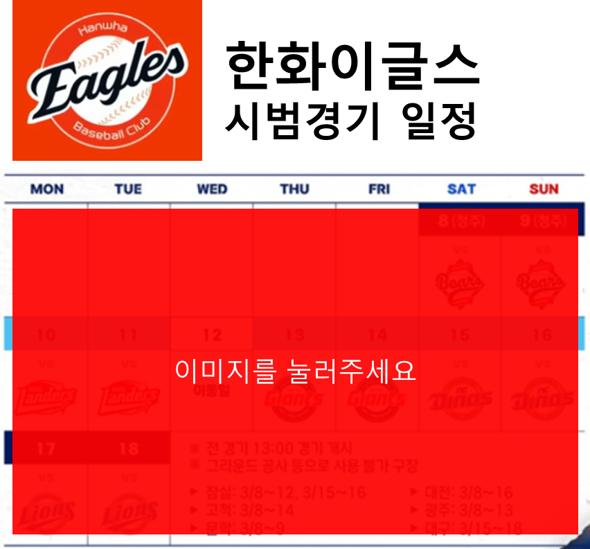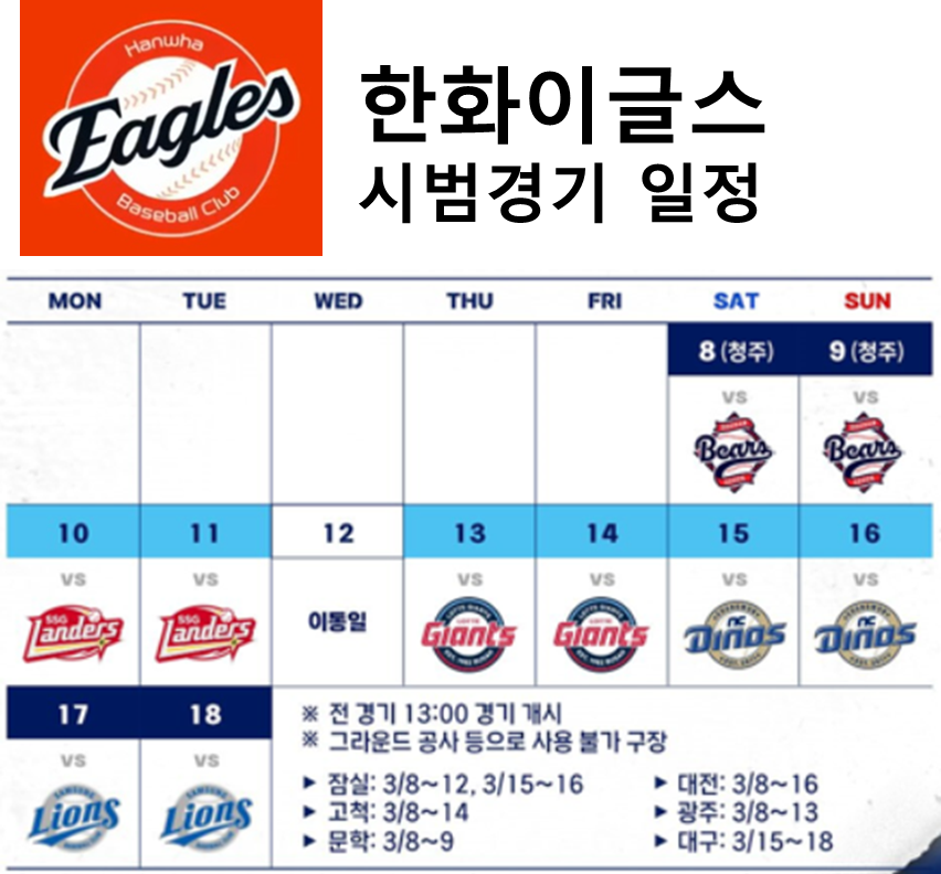 2025 한화이글스 시범경기 일정, 시간, 구장 안내