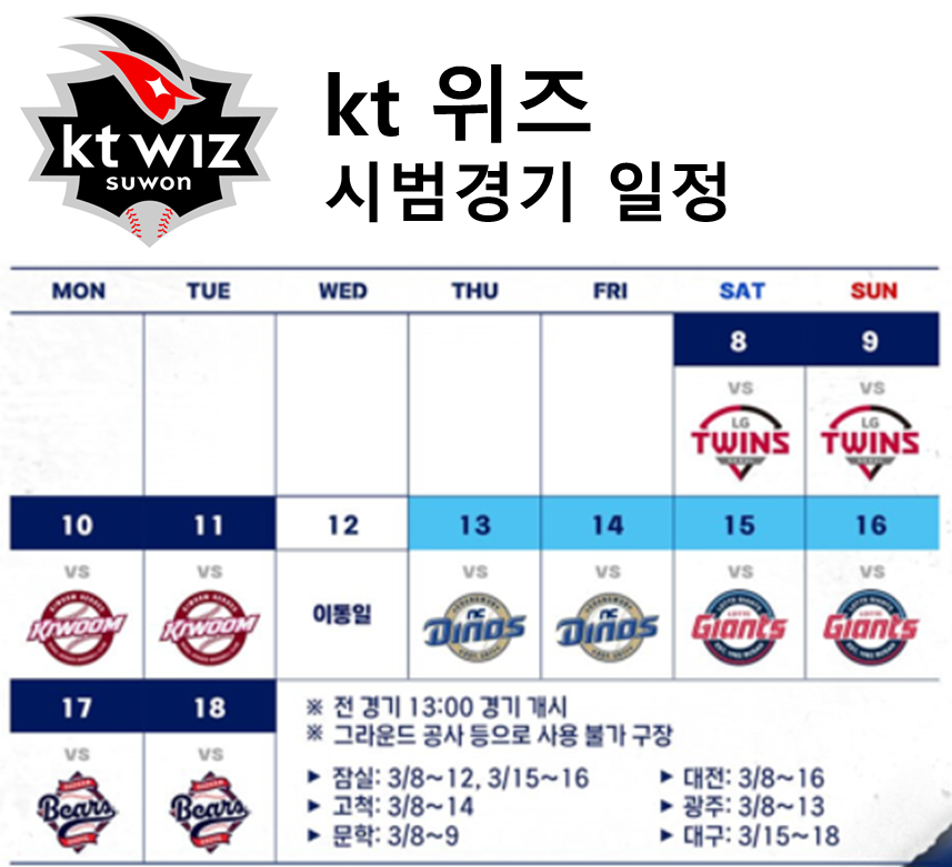2025 KT위즈 시범경기 일정, 시간, 구장 안내