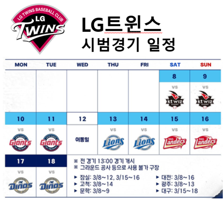 2025 LG트윈스 시범경기 일정, 시간, 구장 안내