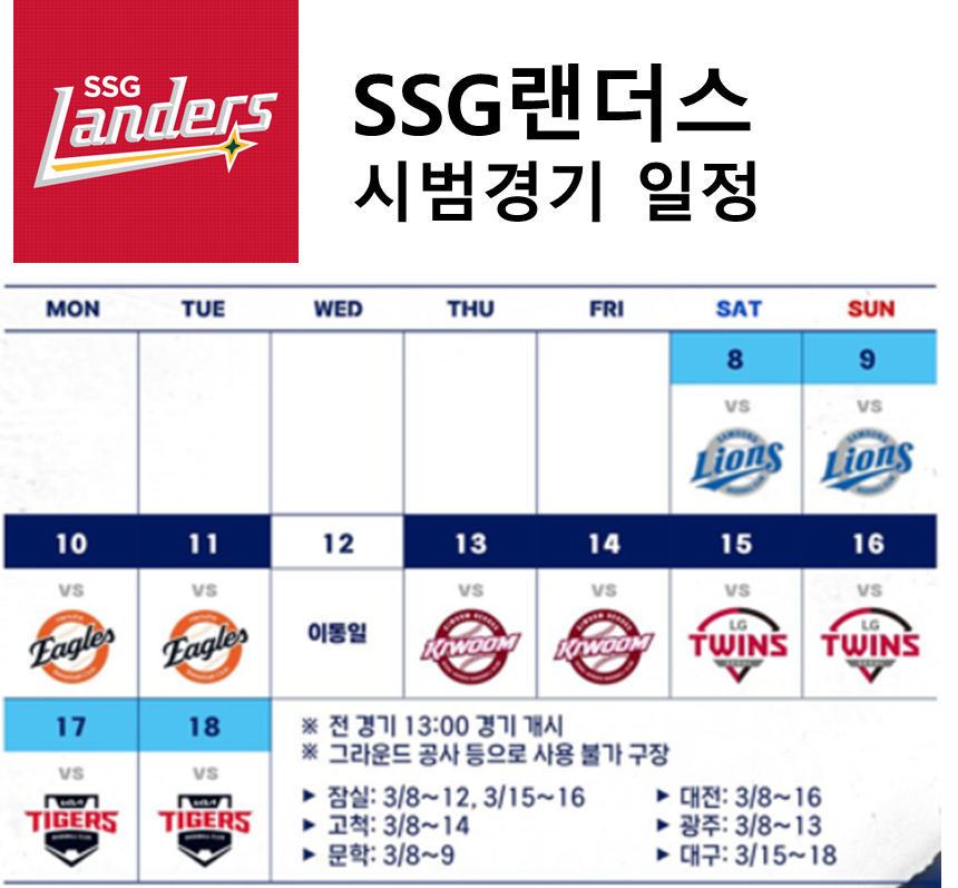 2025 SSG랜더스 시범경기 일정, 시간, 구장 안내